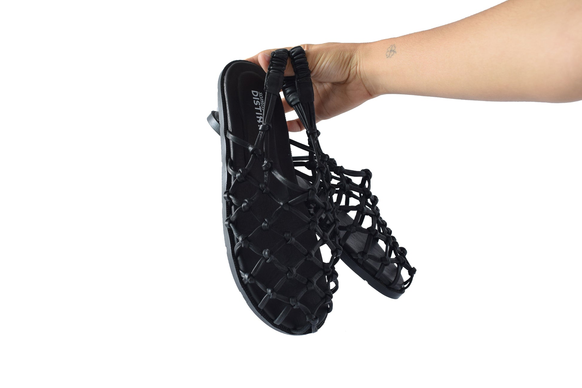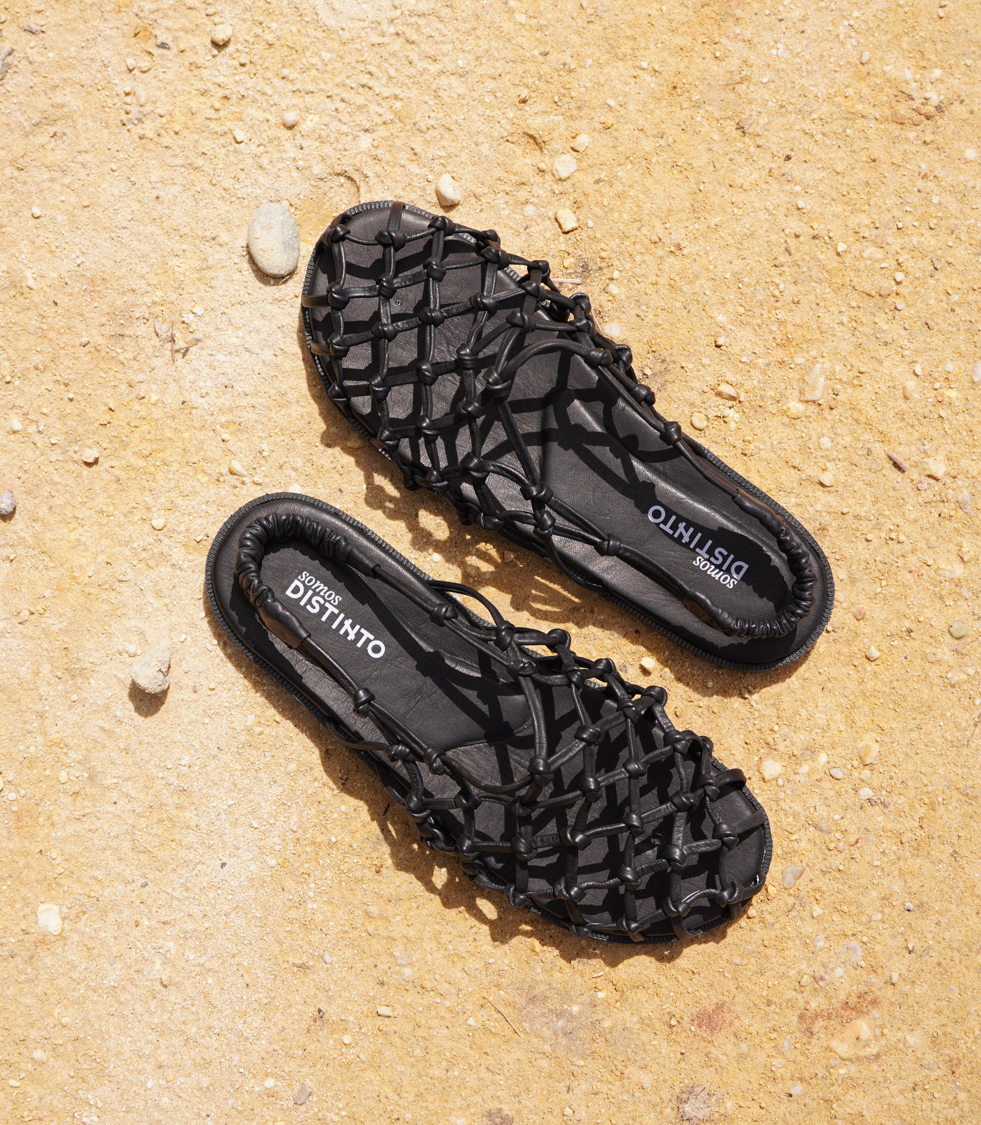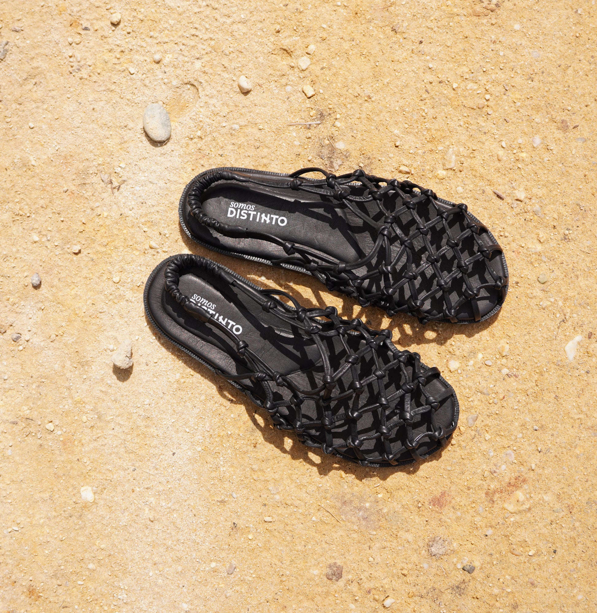 Las Sandalias Canastas negras nacen del recuerdo de las manos que tejen fibras, canastos y memorias en la tierra santandereana.