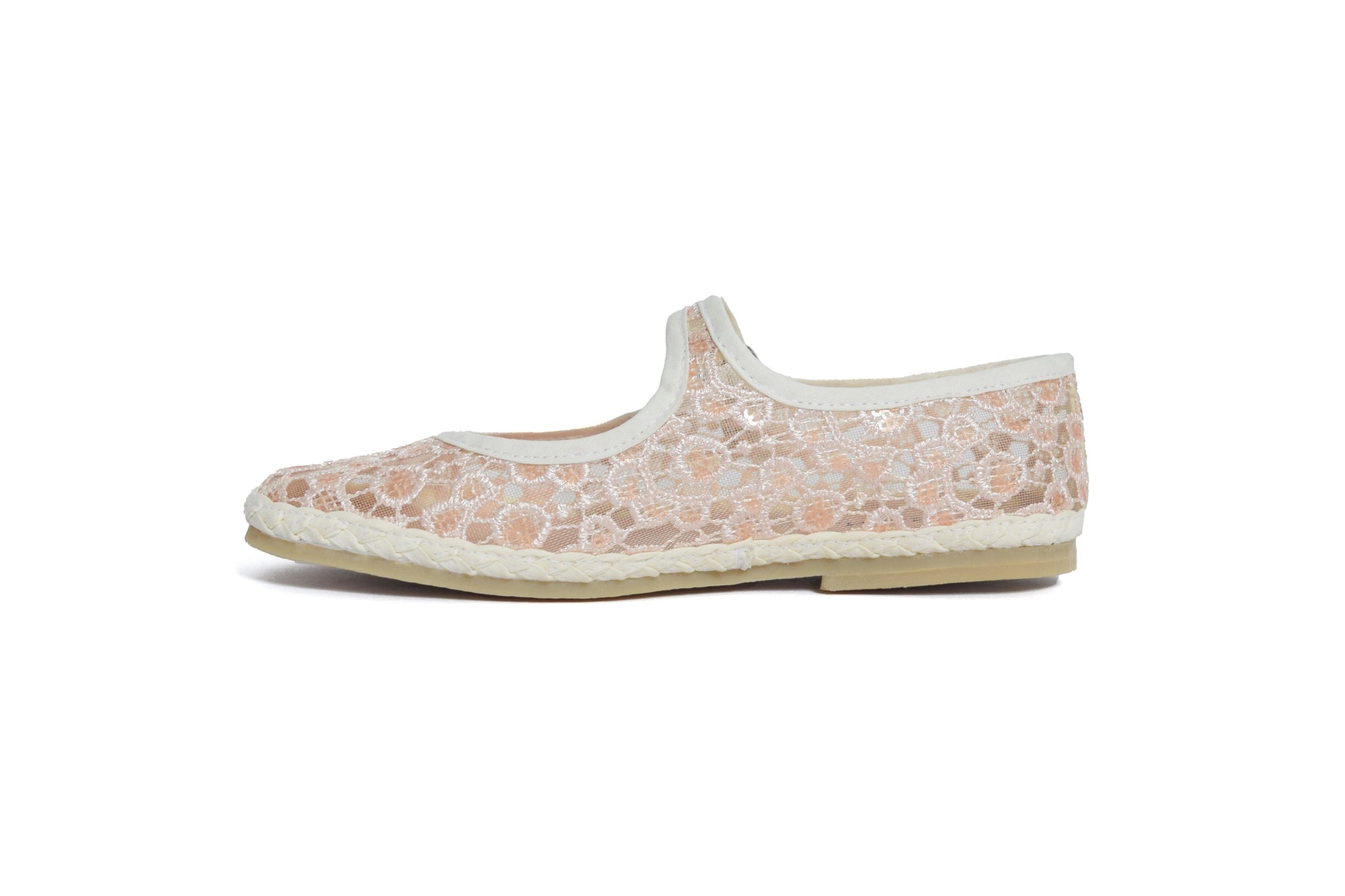 Un diseño único, liviano y lleno de detalles. Esta edición especial de nuestras clásicas Florian está elaborada con una delicada tela bordada, sutilmente transparente, que le da un aire romántico y fresco a cada paso.